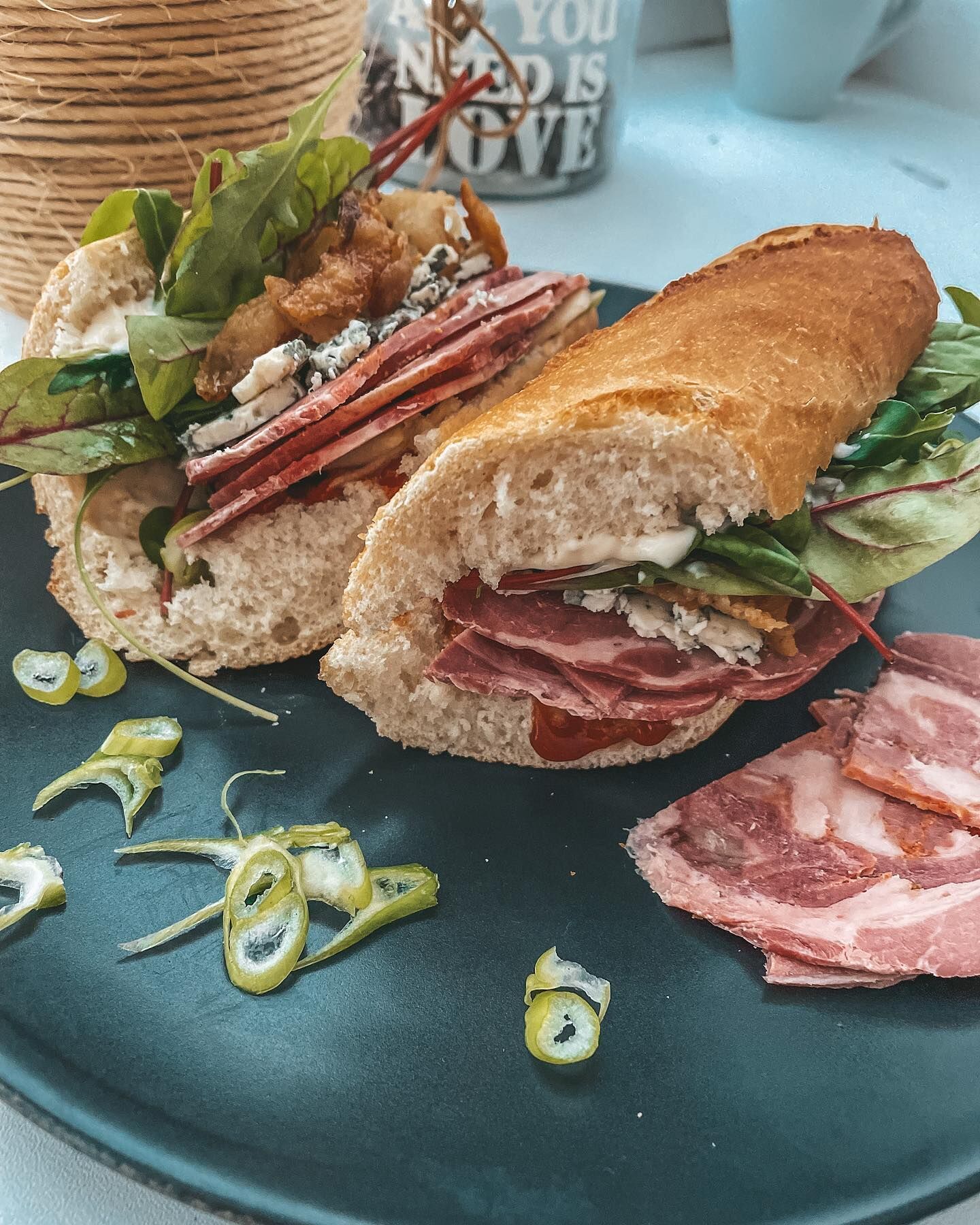 Tento sendvič z rolovaného boku z diviaka je perfektným spojením chutí, ktoré poteší vaše chuťové poháriky. Kombinácia šťavnatého mäsa, pikantnej BBQ omáčky, chrumkavej jarnej cibuľky a sladkých jabĺk vytvára výnimočný gurmánsky zážitok. Pridanie syra s modrou plesňou a diviačej slaninky dodáva sendviču luxusný nádych, zatiaľ čo poľníček a rukola prinášajú sviežosť a ľahkosť.